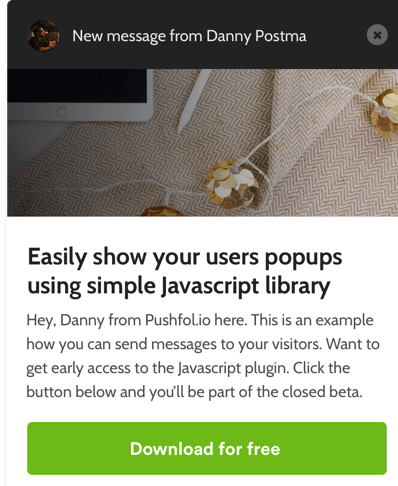 Send popup messages to your visitors with just a few lines of Javascript, for free!